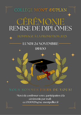 Par admin mont-duplan, publié le mercredi 12 novembre 2025 15:27 - Mis à jour le mercredi 12 novembre 2025 15:27L'équipe du collège Mont Duplan met à l'honneur ses anciens élèves en célébrant cette belle étape dans leur parcours scolaire. -